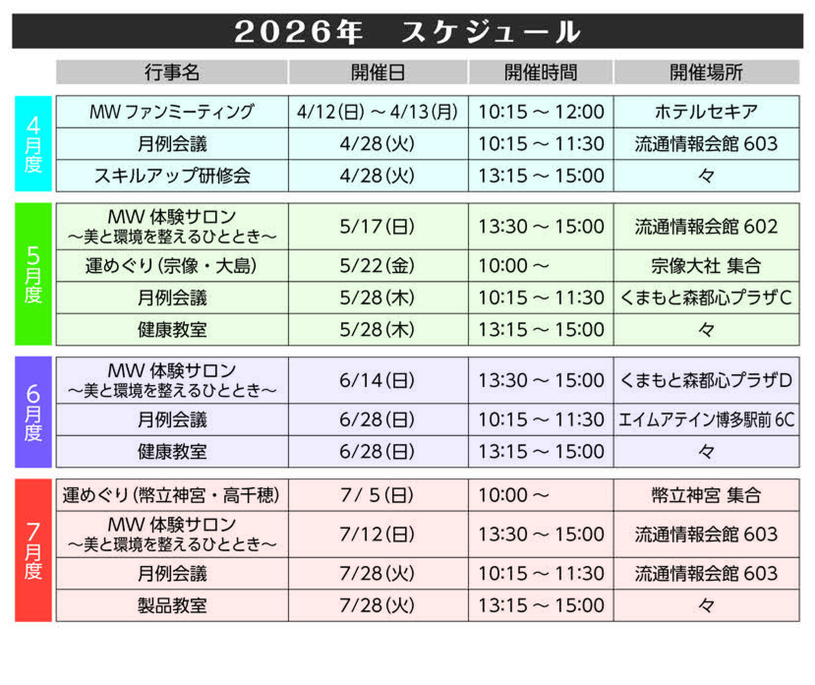 スケジュール(4月5月6月7月)
